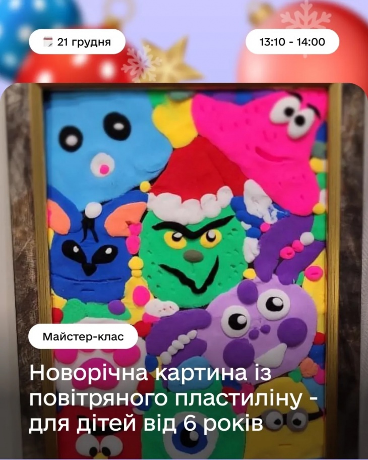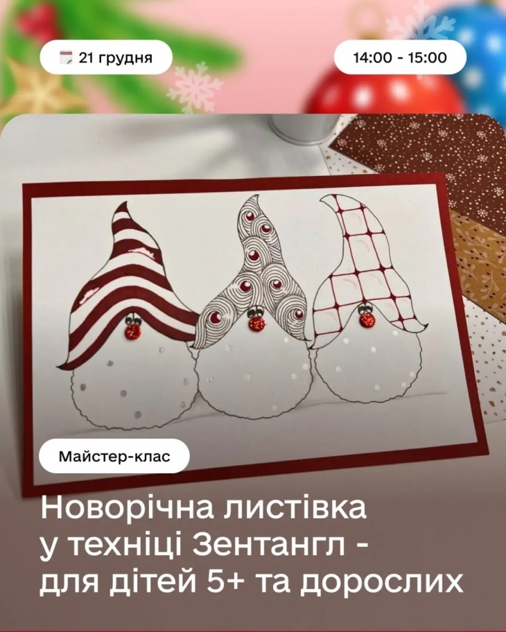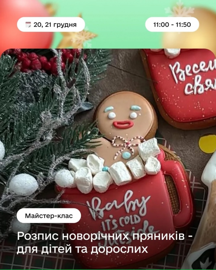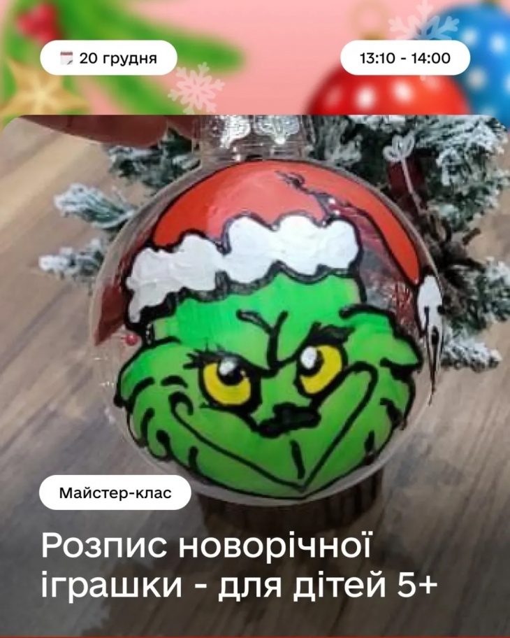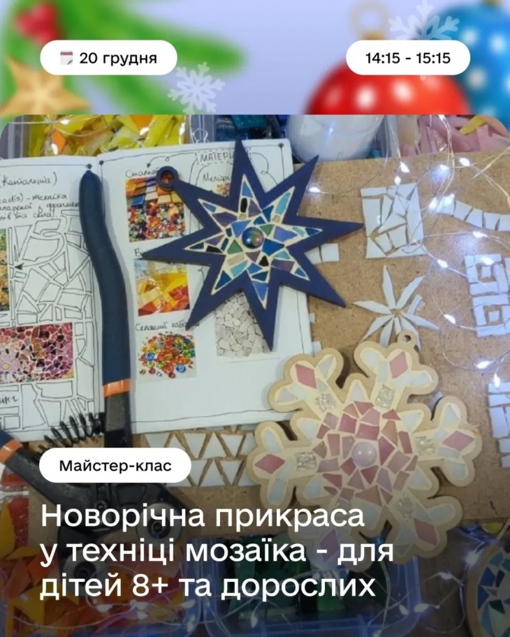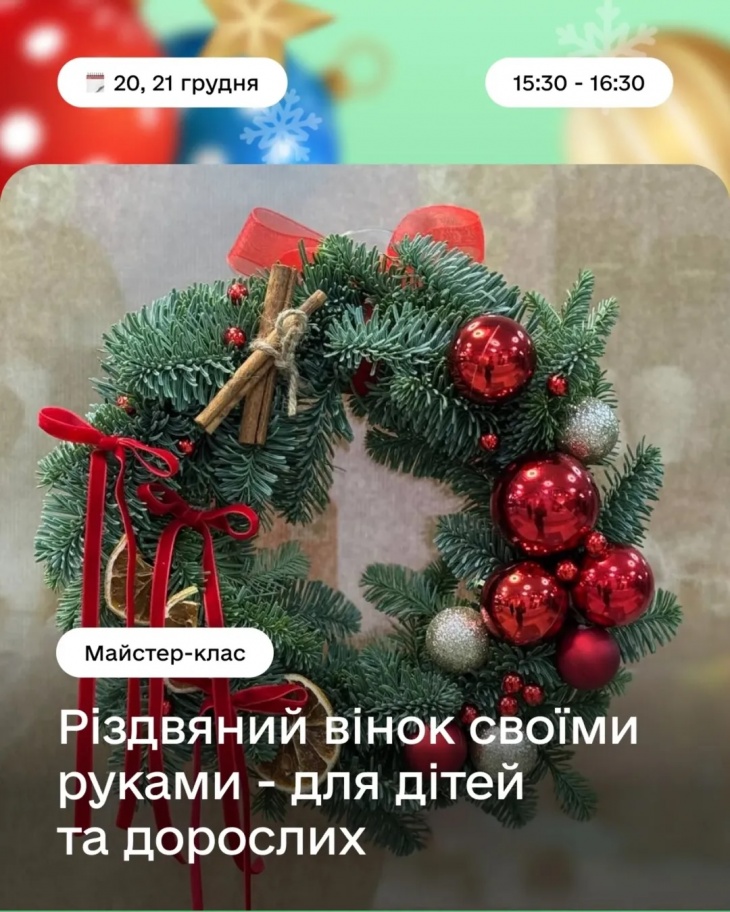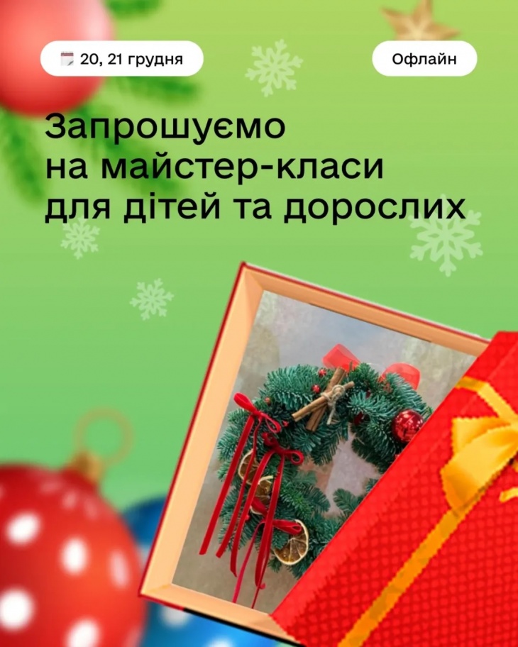 Будемо малювати, декорувати, створювати обереги та святковий декор — усе, щоб зануритись у атмосферу Різдва, провести час разом і забрати з собою щось зроблене власними руками.